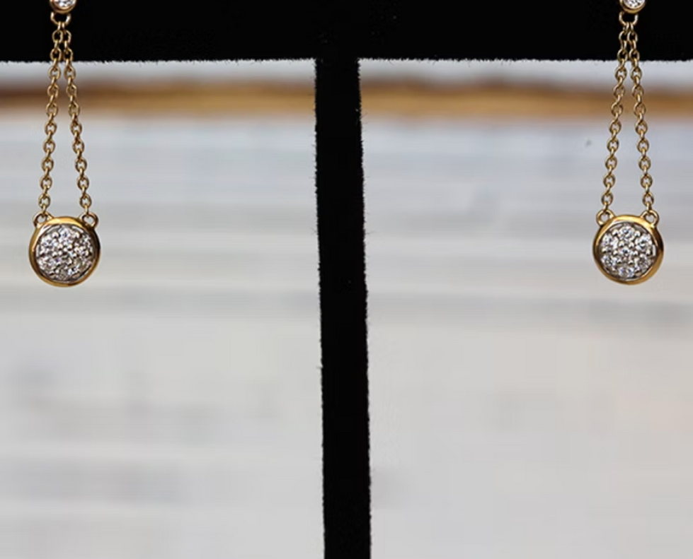 This showcase features a stunning collection of unique earrings, each with its own distinctive design and gemstone accents. From oval diamond earrings to gold chain earrings with round diamond pendants, these pieces are perfect for adding a touch of elegance to any outfit.